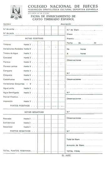στο σύνολο των βαθμών του δελτίου ακλουθούμε τον ίδιο μαθηματικό σύστημα θεωρώντας το υποκειμενικό γεγονός της εντύπωσης που διαμορφώνεται από τα σημεία στο φύλλο Βαθμολόγησης. Αυτό είναι μια έξτρα προσθήκη για τα πτηνά που δεν έχουν αρνητικές φωνές στην φύσα .